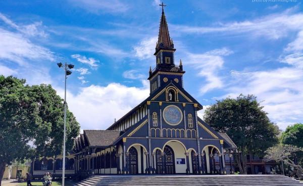 Nhà thờ đươc xây dựng vào năm 1913 bởi các linh mục người Pháp, hiện nay dùng làm nhà thờ chính tòa, nơi đặt ngai tòa của vị giám mục giáo phận Kon Tum. Nhà thờ là sự kết hợp giữa phong cách châu Âu và nét văn hóa của Tây Nguyên Việt Nam, bởi có kiến trúc Roman kết hợp với kiến trúc nhà sàn của người Ba Na.