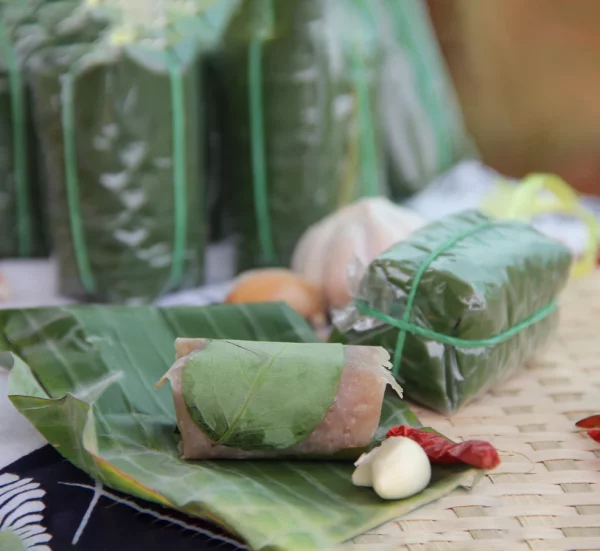 Nem chua: Nem được chế biến kỳ công, phần nhân là thịt lợn tươi chọn lọc kỹ lưỡng kết hợp với thính gạo và men của 1 số lá cây (lá ổi, lá sung) để ủ chín. Khi thưởng thức, du khách cảm nhận rõ vị chua nhẹ nhẹ hòa quyện cùng chút bùi ngọt, hăng hăng của hạt tiêu.