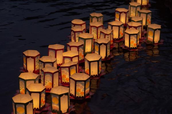 Hàng ngàn ánh sáng nhẹ nhàng ấm áp của những ngọn nến bồng bềnh xé tan trời đêm tĩnh mịch thường ngày, thay vào đó là sự rộn ràng, náo nhiệt, cùng những lời ước nguyện về một cuộc sống bình yên, an lành của người dân Nhật Bản.