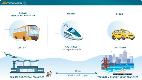 Sân bay cách trung tâm thành phố San Francisco khoảng 21km về phía Nam với thời gian di chuyển từ 15 – 57 phút tùy vào mỗi phương tiện mà Quý khách lựa chọn.