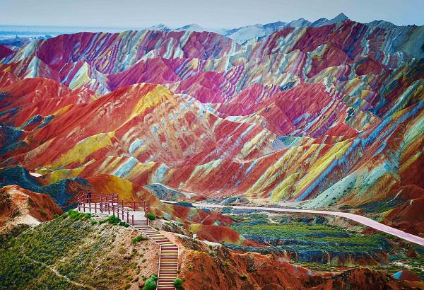 Vinicunca còn được gọi là Núi Cầu vồng là một núi nằm ở độ cao 5200m trên dãy Andes hùng vĩ, Peru, đây là một địa điểm du lịch nổi tiếng “lọt mắt xanh” của nhiều du khách trên khắp nơi trên thế giới. Điểm khác biệt của Vinicunca chính là màu sắc rực rỡ của mình. Vẻ ngoài đó chính là nhờ các khoáng chất tại đây: màu hồng là từ đất sét đỏ pha trộn với cát và đá bùn, màu trắng từ đá sa thạch và các loại đá giàu canxi cacbonat, màu đỏ từ đất sét giàu sắt, màu xanh là hợp chất của Phyllit và đất sét giàu magie và sắt, màu nâu là cuội kết từ đá với magie từ Kỷ Đệ Tứ và màu vàng là từ sa thạch vôi giàu sunfua.